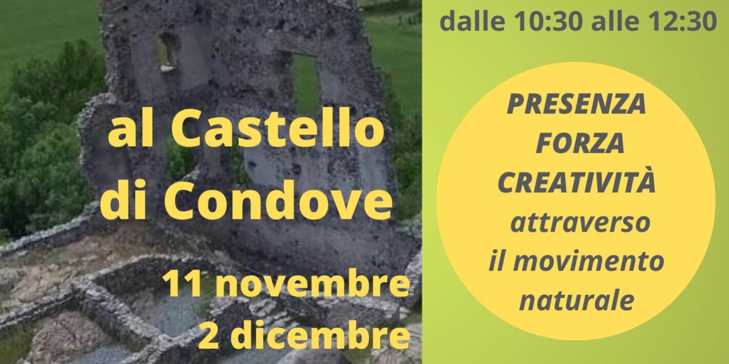 Muoversi in consapevolezza e libertà ci permette di centrarci. Saremo in questo caso in uno scenario ricco di natura e storia, così da essere aiutati a ricordare le nostre origini. Si può partecipare anche a un solo appuntamento oppure a tutto il percorso. Inizieremo tuffandoci in un autunno già avanzato per concludere alle soglie dell’estate, sempre all’aperto perché anche le diverse manifestazioni del tempo atmosferico ci offrono una occasione preziosa di scoprire qualcosa che è anche dentro di noi.